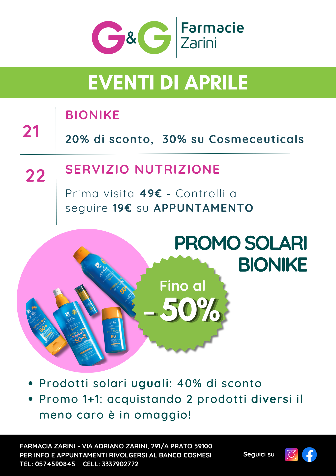 21 Maggio – Giornata Bionike: 20% di sconto, 30% su Cosmeceuticals e 1+1 sui solari