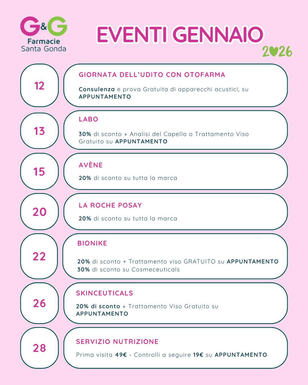 Per iniziare al meglio questo nuovo anno, approfitta delle giornate promozionali dedicate a marchi selezionati da G&G Farmacie.