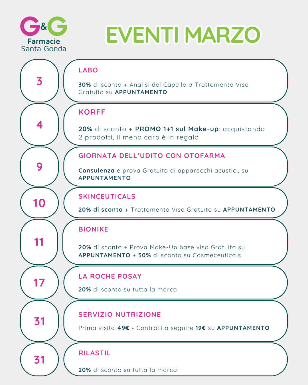Ti aspettiamo alla Farmacia Santa Gonda in occasione delle giornate promozionali di Marzo dedicate al tuo benessere.